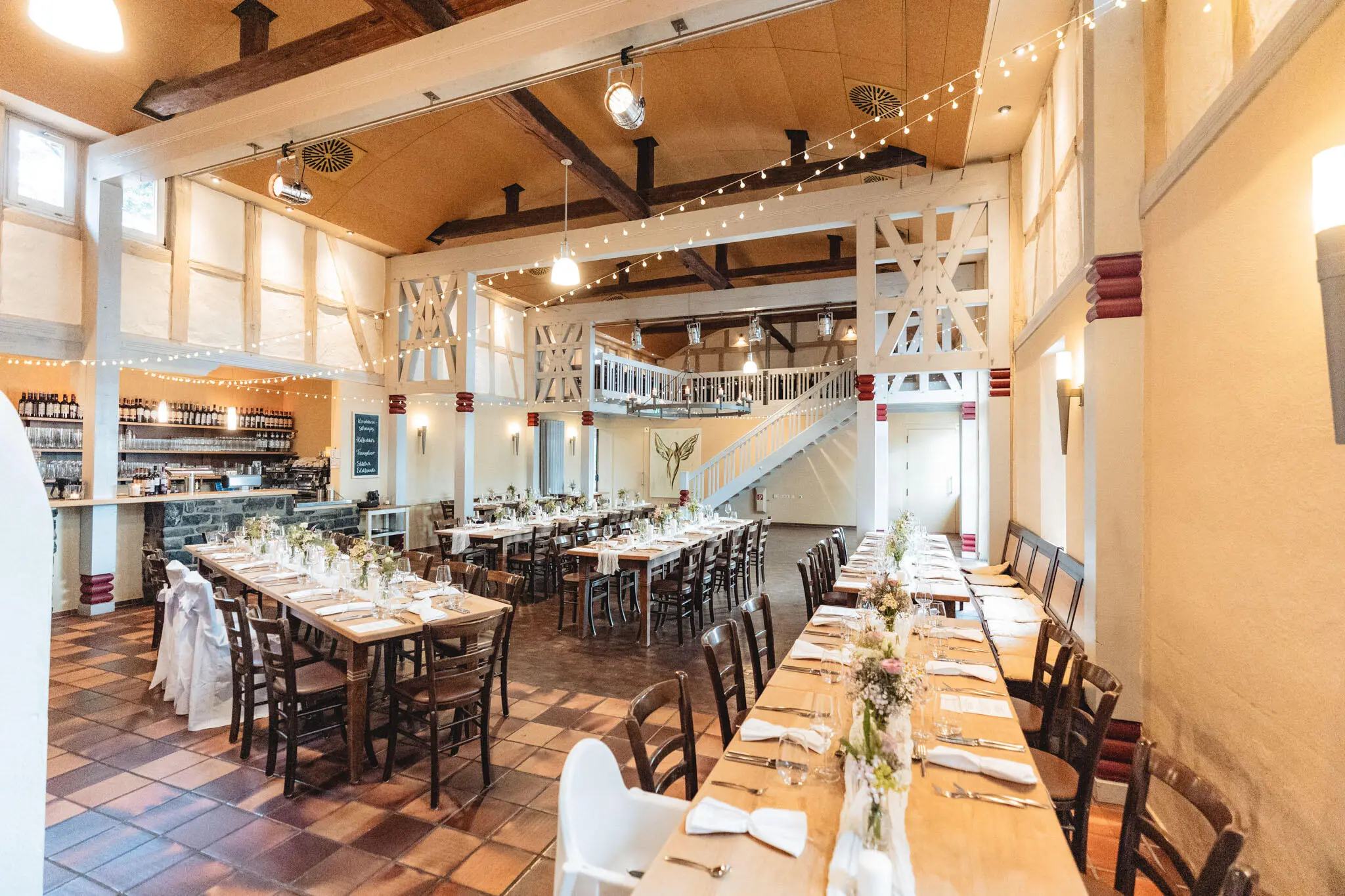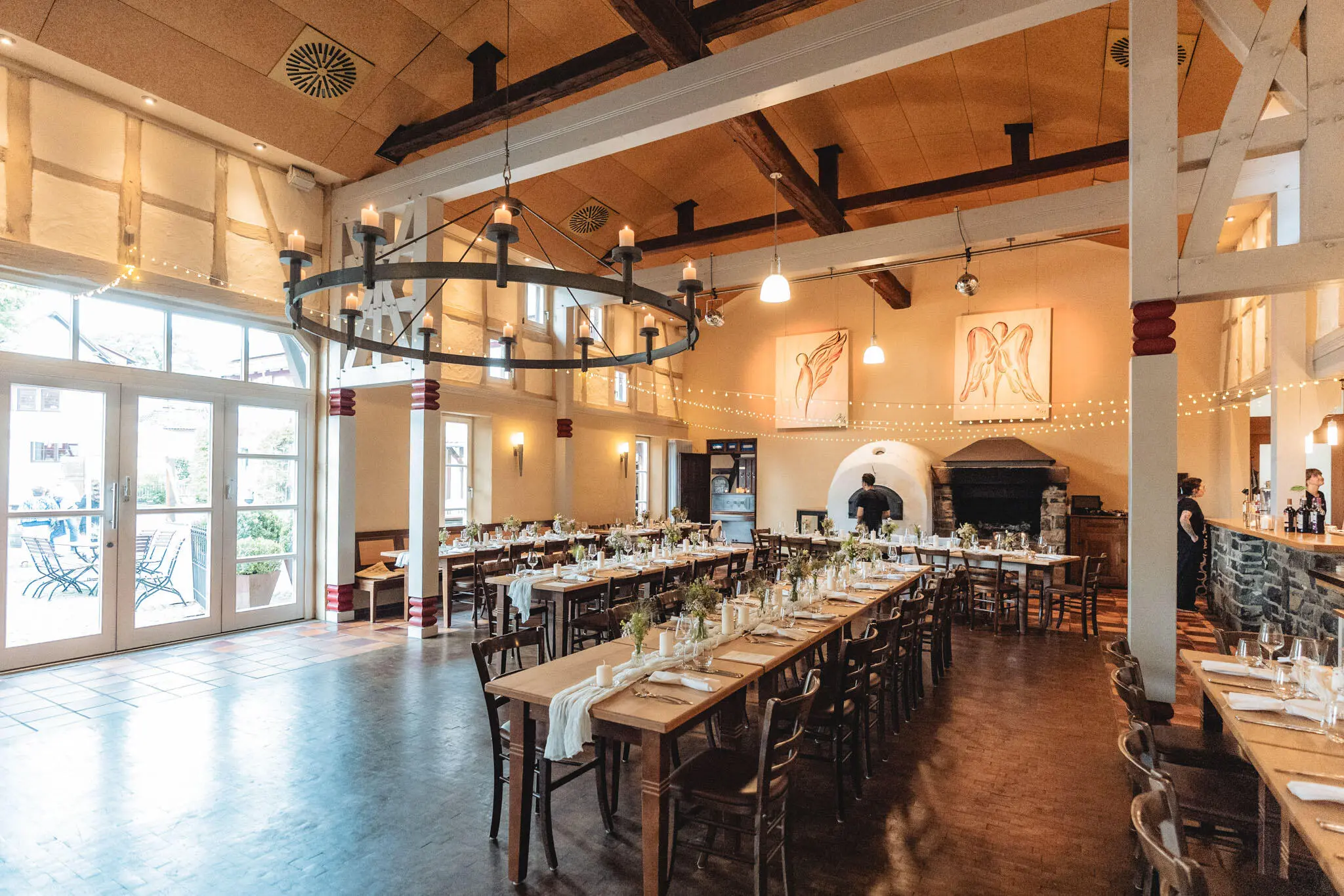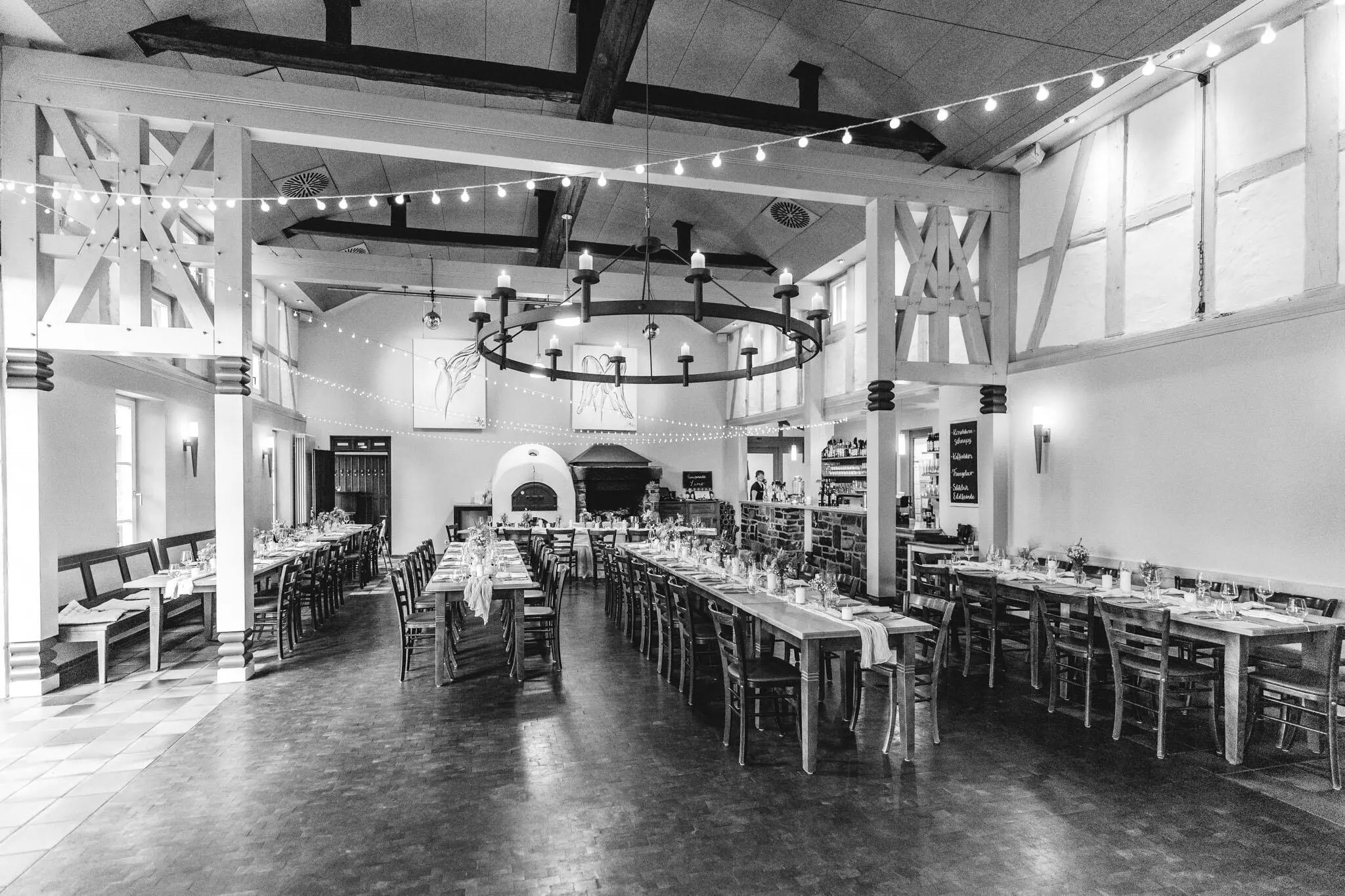 - Rustic Chic: Stimmungsvolle, warme Bilder in der Kulturscheune mit dem Licht des offenen Kamins.
