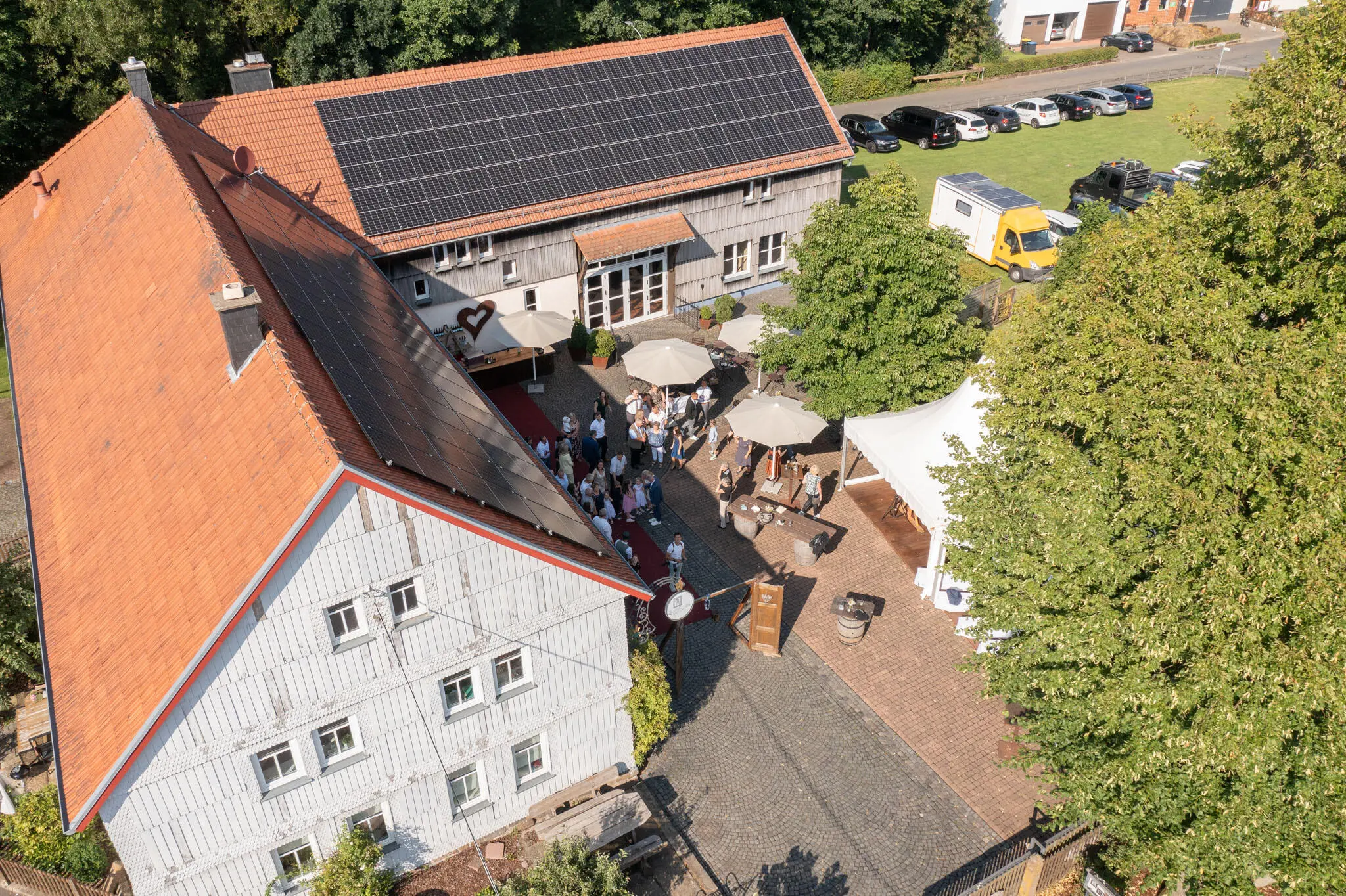- Der Innenhof: Perfekt für den Sektempfang unter freiem Himmel mit feinen Häppchen, bevor die Party in der Scheune (auf Wunsch bis 3:00 Uhr morgens!) steigt.