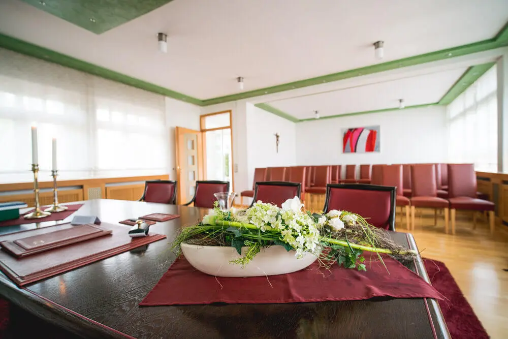 Die Gemeinde Flieden hat erkannt, dass euer großer Tag maximale Aufmerksamkeit verdient. Das Rathaus bietet einen sehr würdigen und modernen Rahmen. Das Trauzimmer ist hell, zeitgemäß eingerichtet und bietet Platz für etwa 40 Personen. Wenn ihr eine etwas größere Gesellschaft plant, steht oft auch der Rathaussaal zur Verfügung, was eine tolle Option ist, um alle eure Lieben bei der Zeremonie dabeizuhaben. Die Atmosphäre im Amt ist herzlich und unkompliziert, was viel von der anfänglichen Nervosität nimmt.